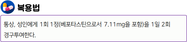 오늘 제가 알려드릴 의약품은 베포탄정입니다.