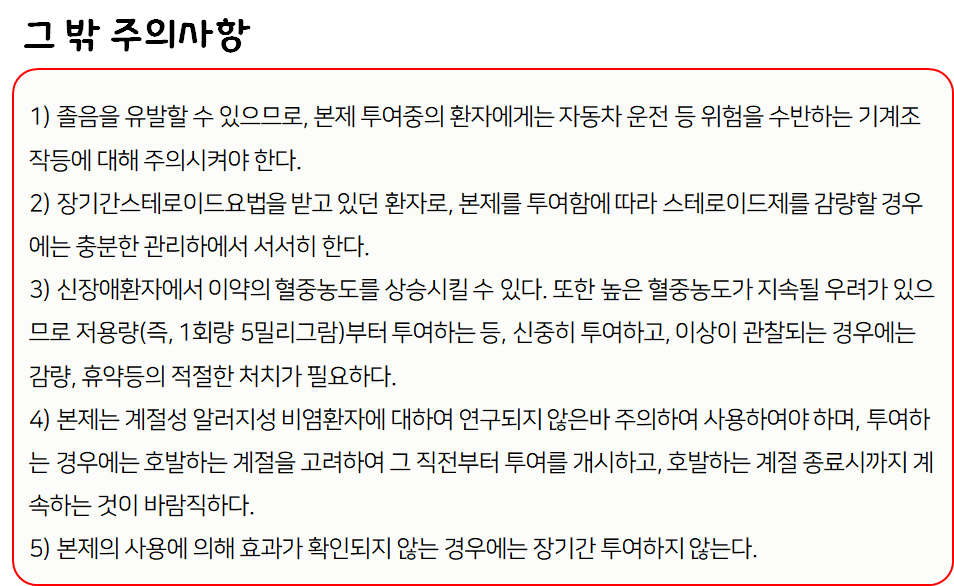 이 의약품은 알러지유발 물질의 작용을 차단하여 각종 알러지 증상을 개선하는 약이니 참고하시길 바랍니다.