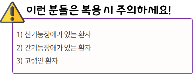 - 다음 환자는 복용 전 전문가 or 의사와 상담 후 복용하시길 바랍니다.