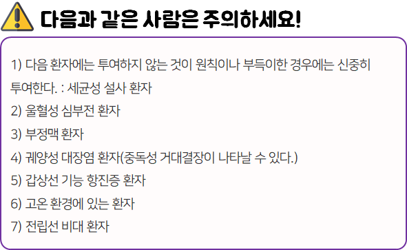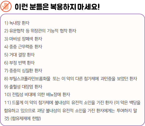 - 다음과 같은 사람은 복용 시 위험할 수 있으므로 복용하지 마시길 바랍니다.
