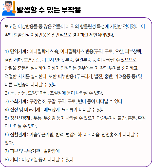 의약품은 반드시 복용 전에 복용 시 발생할 수 있는 부작용이나 주의사항 등을 미리 확인하신 후 드셔야 안전하게 먹을 수 있습니다.