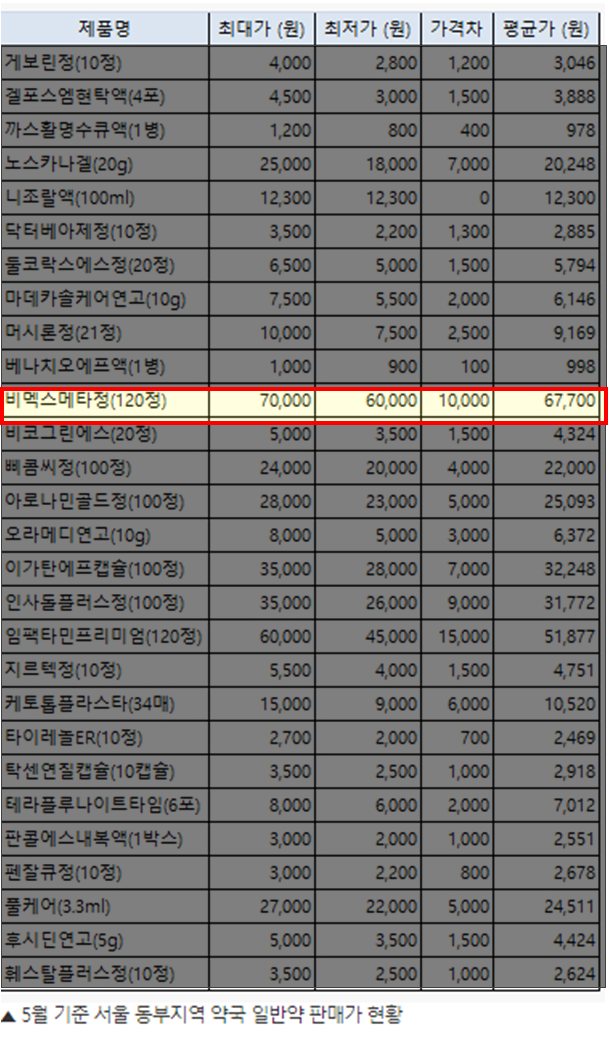 비맥스 메타는 전국 약국에서 구매가 가능한데, 2020년 5월 기준 최대가 70,000원 최저가 60,000원으로 ~원 정도의 차이가 있습니다.