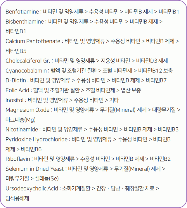 : 대사성 의약품 > 비타민제 > 기타의 비타민제