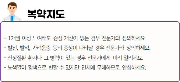 또한 복용 중 이상 반응이 나타나면 즉시 복용을 멈추고, 전문가나 의사와 상담하셔서 복용량을 줄이거나 복용을 멈추시는 것이 좋습니다.