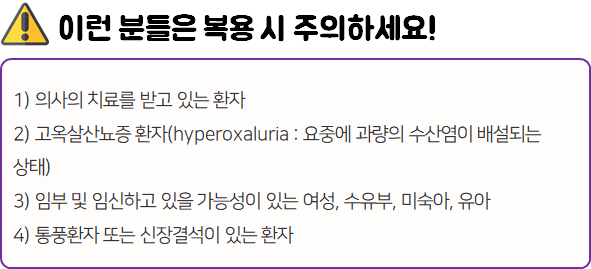 - 다음 환자는 복용 전 전문가 or 의사와 상담 후 복용하시길 바랍니다.