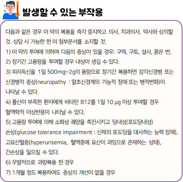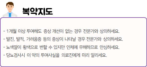 몸에 맞지 않는 의약품의 경우 크고 작은 이상 반응을 불러일으킬 수 있으므로 드시기 전에 반드시 부작용이나 주의사항 등을 미리 확인하시길 바랍니다.