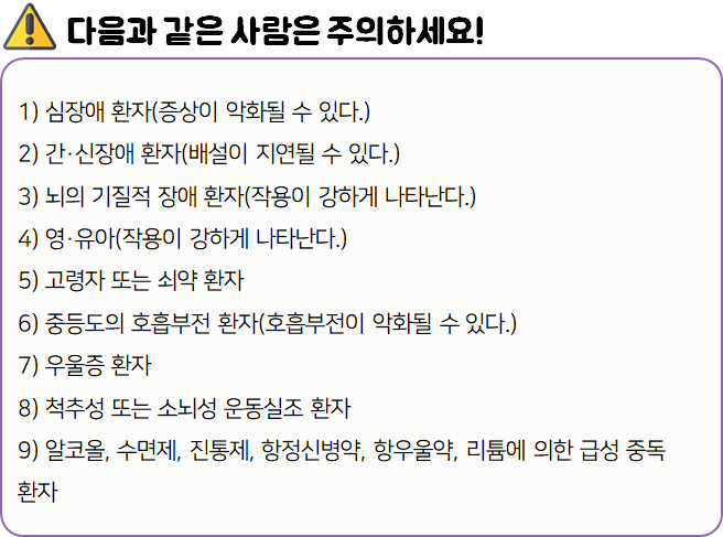 - 다음 환자는 복용 전 전문가 or 의사와 상담 후 복용하시기 바랍니다.