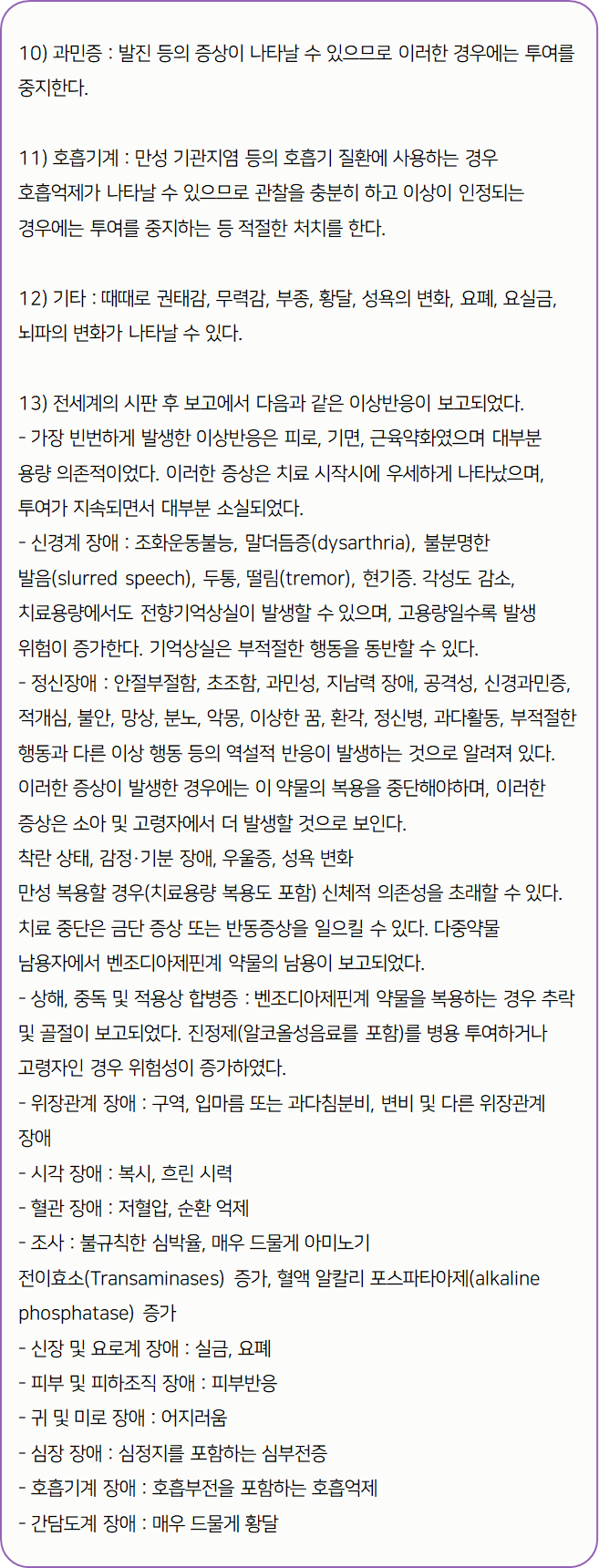 - 이 약을(를) 복용할 시 다음과 같은 부작용이 발생할 수 있으니 주의하시기 바랍니다.