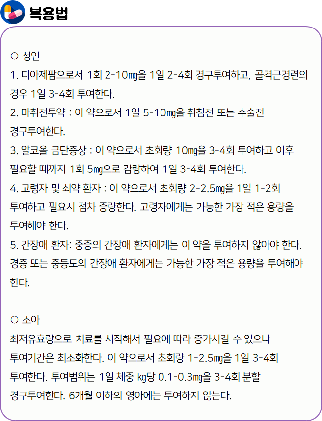 : Diazepam : 정신/행동장애 > 항불안제 > Benzodiazepine계