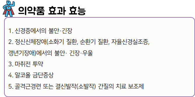 이 의약품은 진정 및 안정 효과를 나타냄으로써 각종 불안장애를 개선하는 약이니 참고하시기 바랍니다.