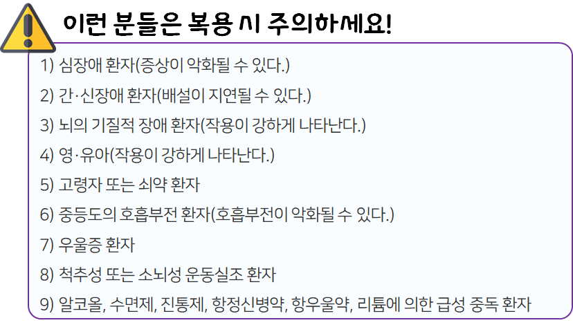 - 다음 환자는 복용 전 전문가 or 의사와 상담 후 복용하시길 바랍니다.