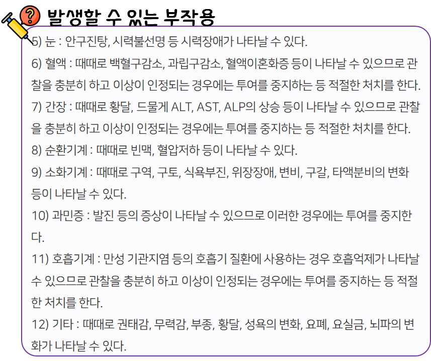 또한 복용 중 이상 반응이 나타나면 즉시 복용을 멈추고, 전문가나 의사와 상담하셔서 복용량을 줄이거나 복용을 멈추시는 것이 좋습니다.