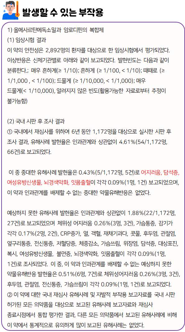 의약품은 반드시 복용 전에 복용 시 발생할 수 있는 부작용이나 주의사항 등을 미리 확인하신 후 드셔야 안전하게 먹을 수 있습니다.