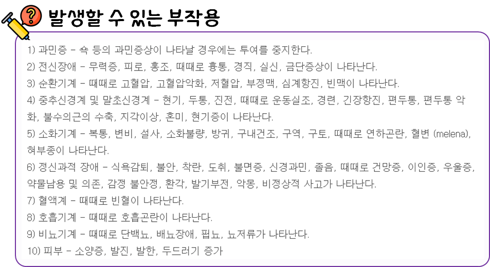 부작용, 복용시 주의사항에 대한