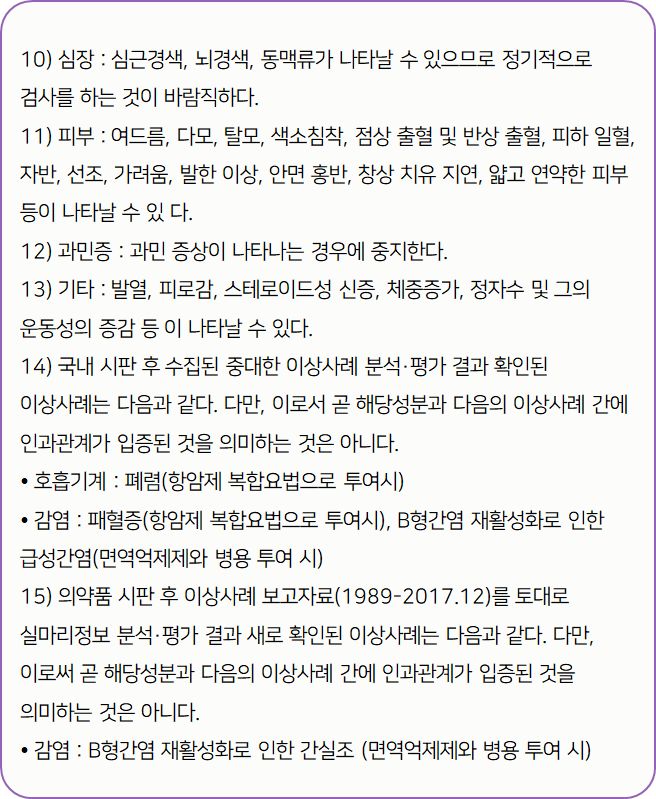 이 약을(를) 복용할 시 다음과 같은 부작용이 발생할 수 있으니 주의하시길 바랍니다.