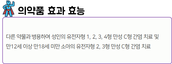 이 의약품은 간염 바이러스의 증식을 억제함으로써 만성 C형 간염을 치료하는 약이니 참고하시길 바랍니다.
