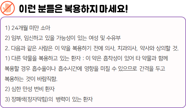 - 다음 환자는 복용 시 위험할 수 있으므로 복용하지 마시길 바랍니다.