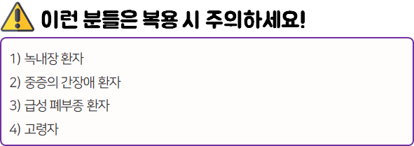 - 다음과 같은 사람은 복용 시 위험할 수 있으므로 복용하지 마시길 바랍니다.