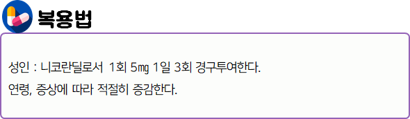 : Nicorandil : 순환기계질환 > 협심증 치료제 > 기타