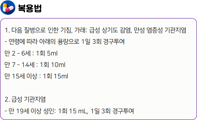 이 의약품은 급·만성 기관지염에 사용되는 거담제이니 참고하시기 바랍니다.