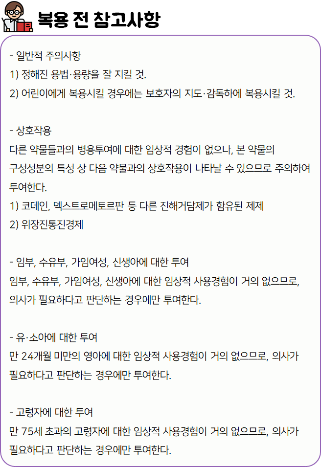 이 의약품은 급·만성 기관지염에 사용되는 거담제이니 참고하시기 바랍니다.