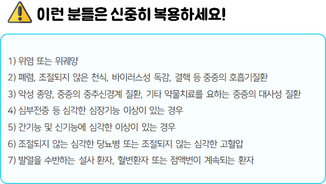 - 다음과 같은 사람은 복용 시 위험할 수 있으므로 복용하지 마시길 바랍니다.