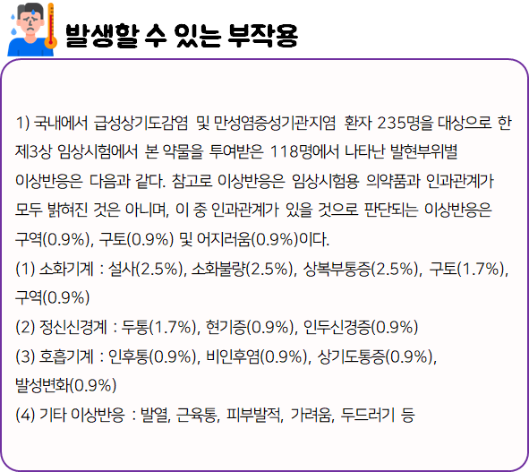 이 의약품은 급·만성 기관지염에 사용되는 거담제이니 참고하시길 바랍니다.