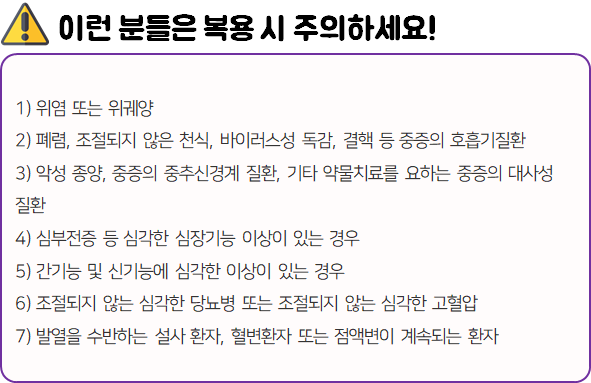 - 다음 환자는 복용 전 전문가 or 의사와 상담 후 복용하시길 바랍니다.