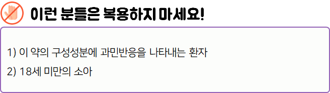 - 다음 환자는 복용 시 위험할 수 있으므로 복용하지 마시기 바랍니다.