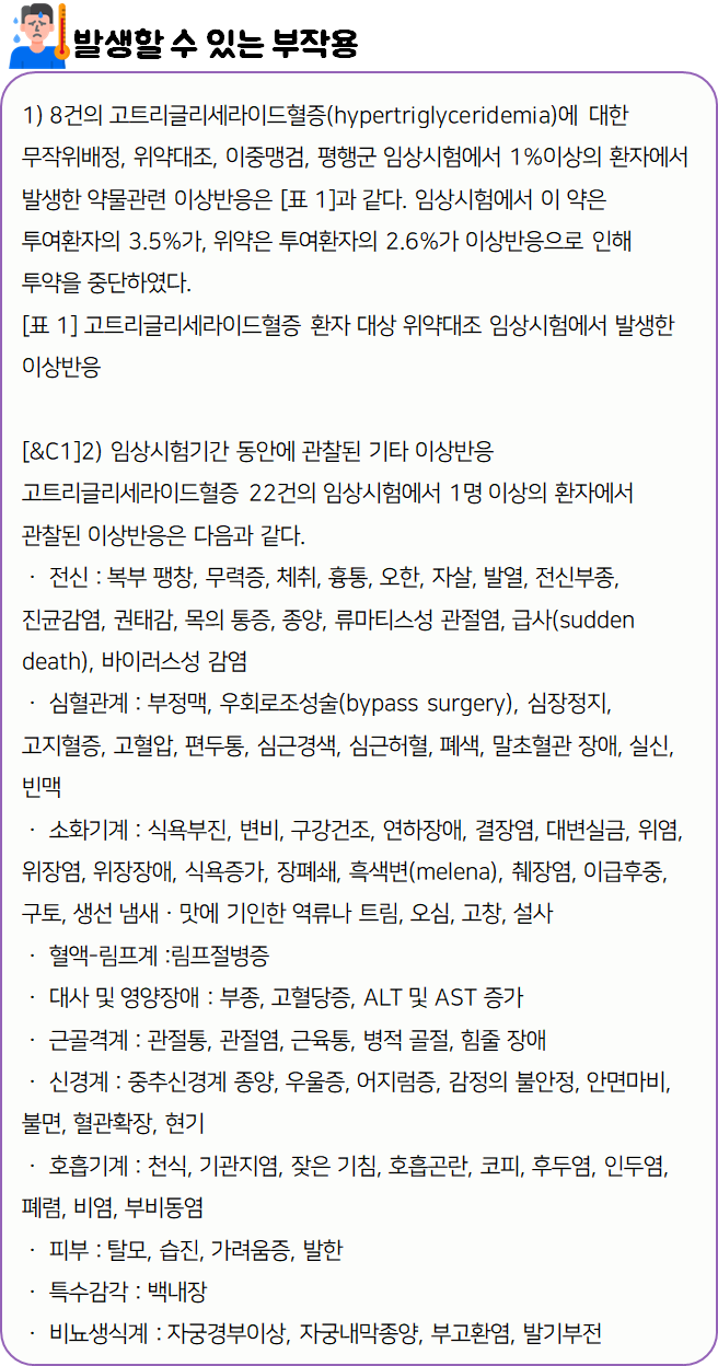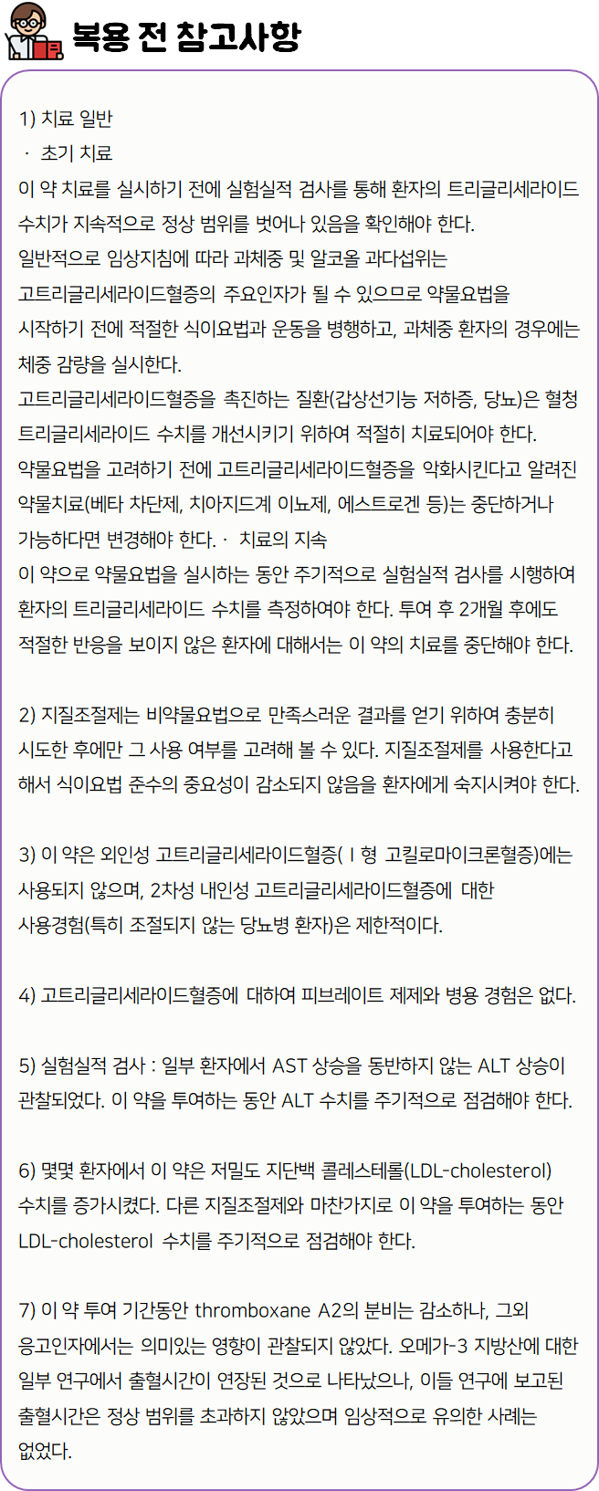 이 의약품은 혈중 중성지방을 감소시키는 약이니 참고하시길 바랍니다.