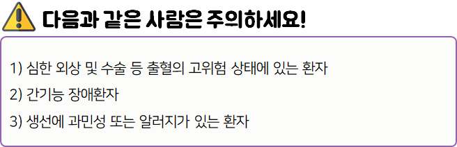 - 다음 환자는 복용 전 전문가 or 의사와 상담 후 복용하시기 바랍니다.
