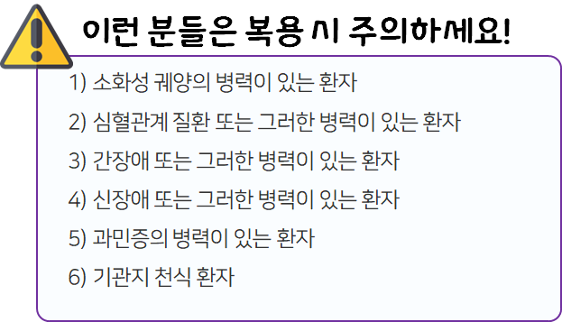 - 다음 환자는 복용 전 전문가 or 의사와 상담 후 복용하시길 바랍니다.