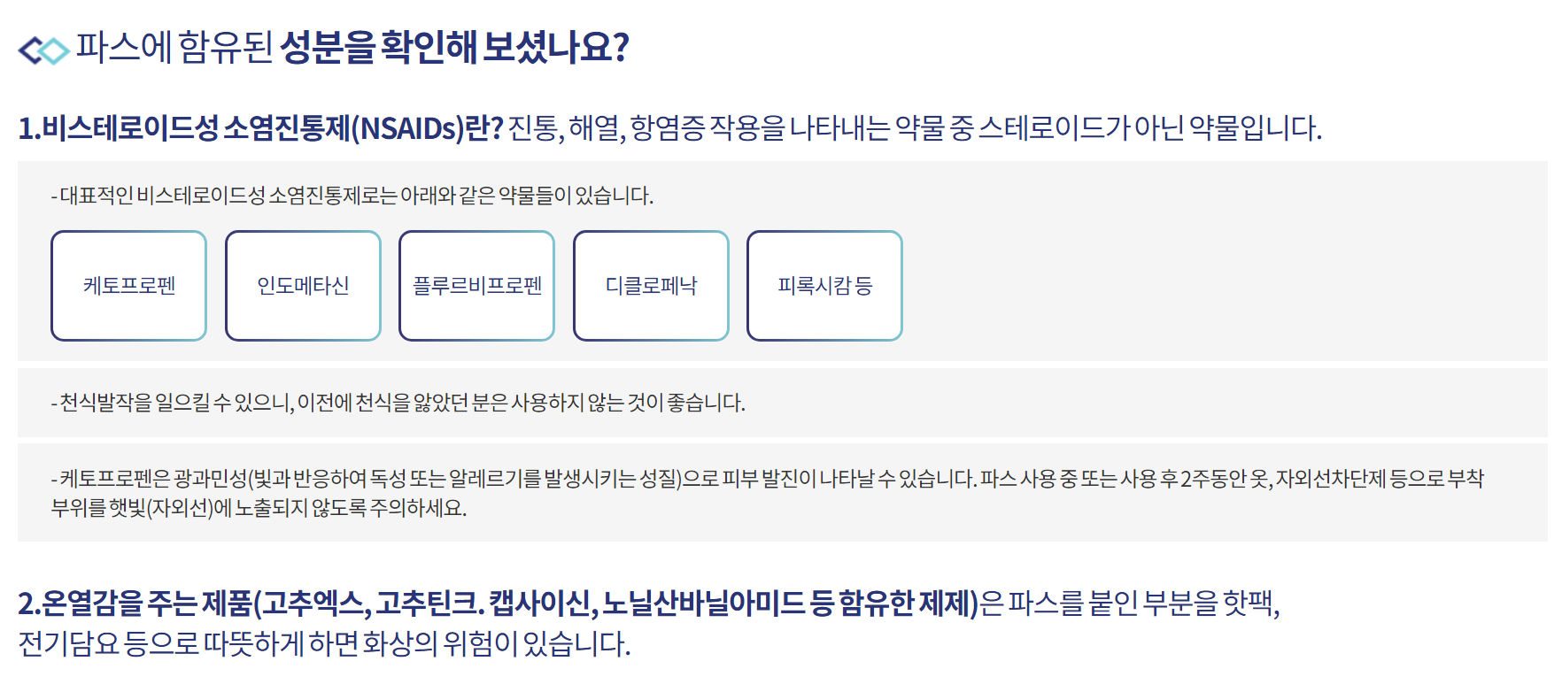 신신파스 아렉스 의약품 복약 지도