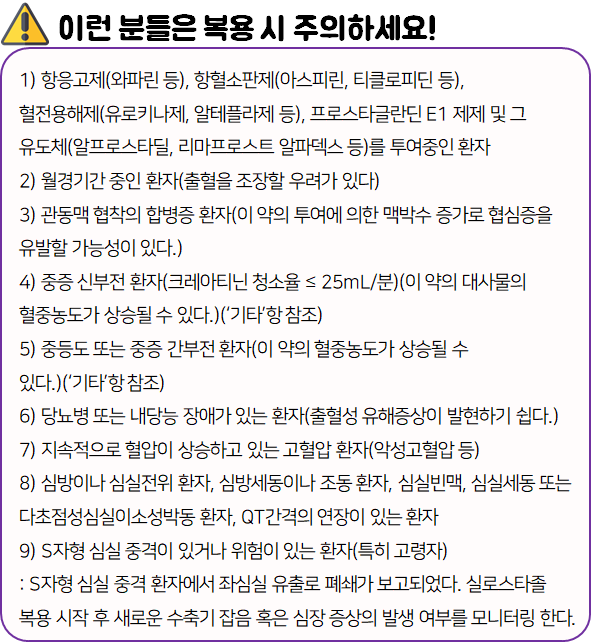 실로스탄 씨알정 복용 시 주의해야 할 사항