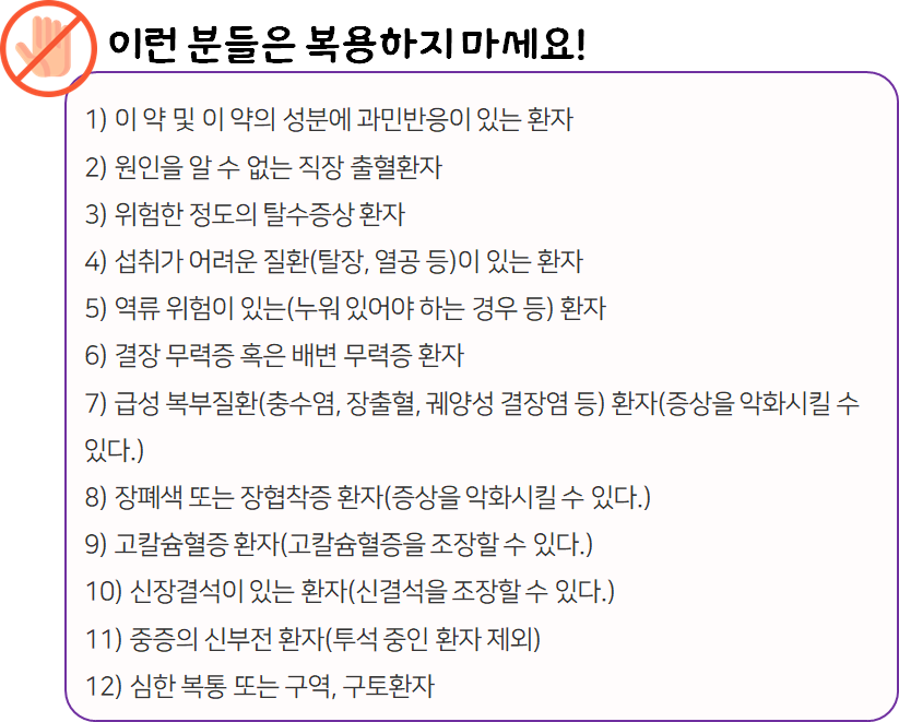 - 다음 환자는 복용시 위험할 수 있으므로 복용하지 마시길 바랍니다.