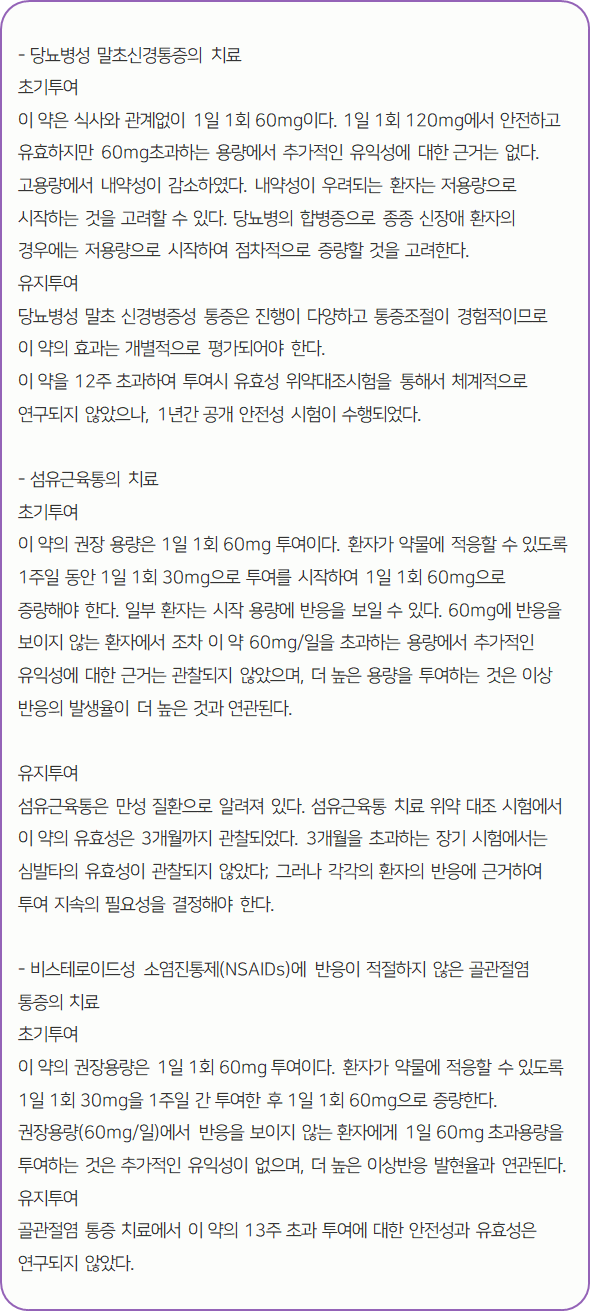 심발타캡슐 30mg의 올바른 복용법