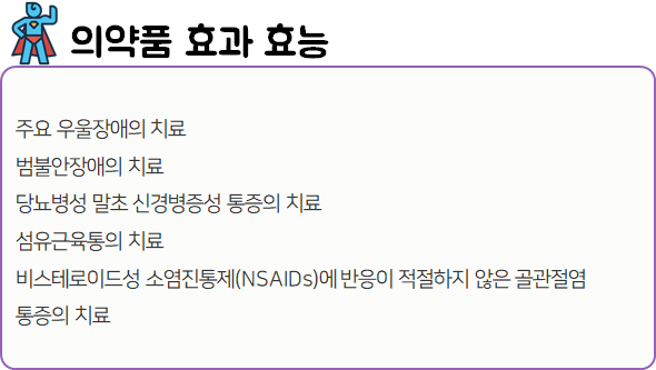 심발타캡슐 30mg 효과 및 효능은 다음과 같습니다.