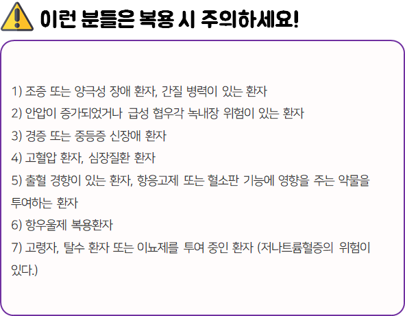 - 다음과 같은 사람은 복용 시 위험할 수 있으므로 복용하지 마시길 바랍니다.