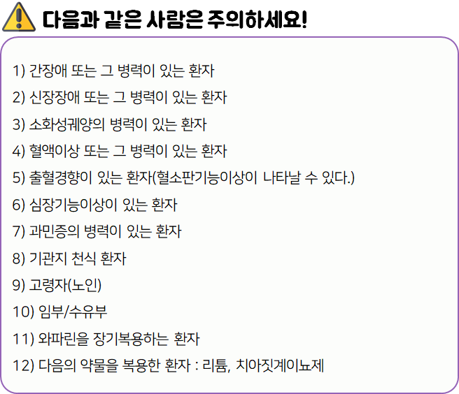 - 다음 환자는 복용 전 전문가 or 의사와 상담 후 복용하시기 바랍니다.