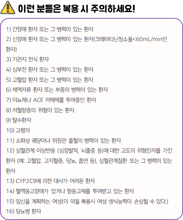- 다음 환자는 복용 전 전문가 or 의사와 상담 후 복용하시길 바랍니다.