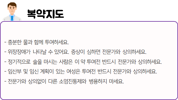 이 의약품은 염증을 완화시키고, 통증을 해소하는 진통 소염제 약이니 참고하시길 바랍니다.
