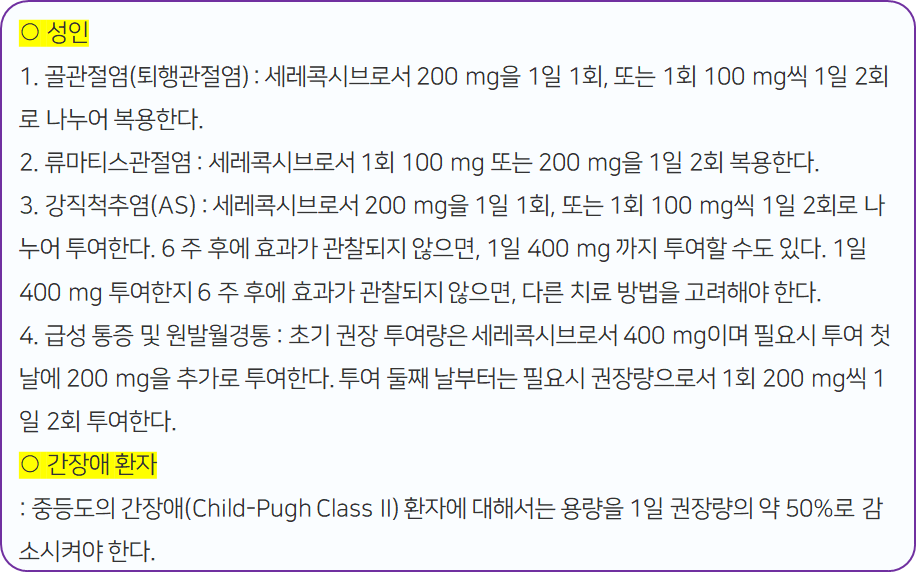 쎄레브렉스 캡슐 200mg 복용 시 주의사항