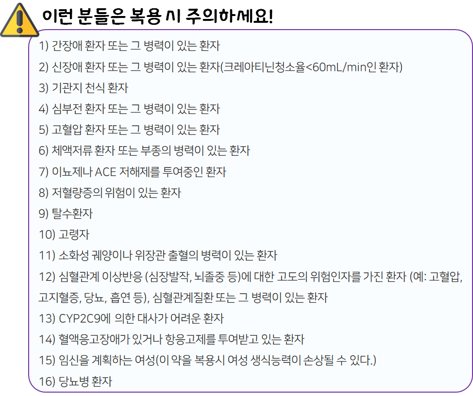 - 다음 환자는 복용 전 전문가 or 의사와 상담 후 복용하시길 바랍니다.