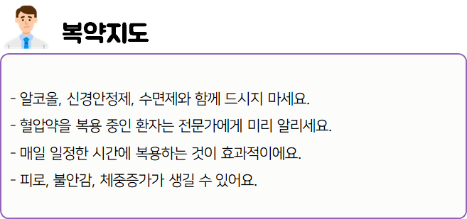 혹시나 복용 중 부작용이나 각종 이상 반응이 나타나면 전문가 혹은 의사와 상담하시어 복용량을 줄이거나 복용을 멈추시는 것이 좋습니다.
