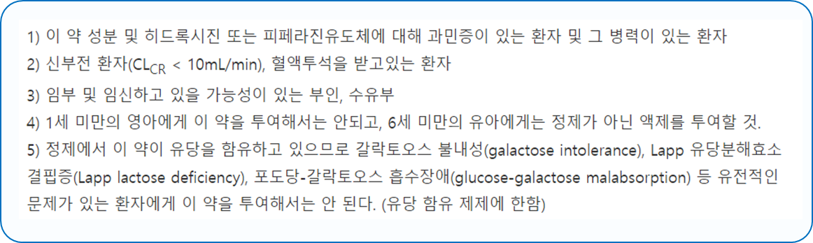 - 다음 환자는 복용시 위험할 수 있으므로 복용하지 마시길 바랍니다.