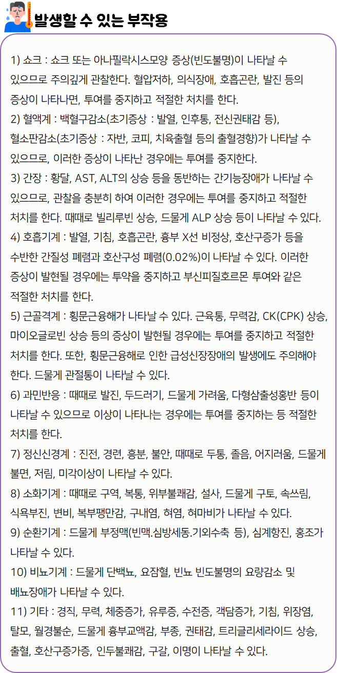 - 이 약을(를) 복용할 시 다음과 같은 부작용이 발생할 수 있으니 주의하시기 바랍니다.