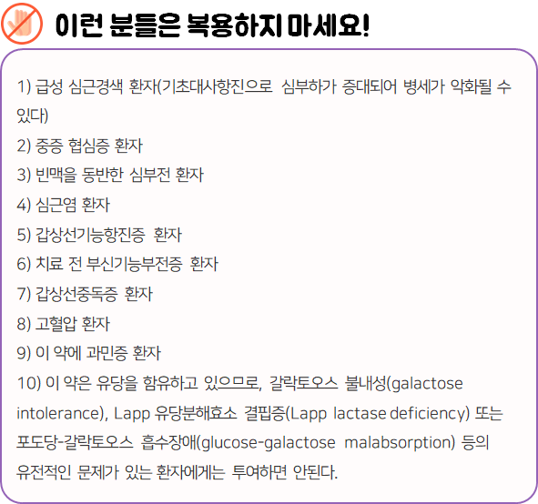 - 다음과 같은 사람은 복용 시 위험할 수 있으므로 복용하지 마시길 바랍니다.