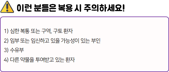 - 다음과 같은 사람들은 의약품 복용 전 참고하시길 바랍니다.
