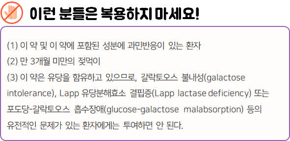 - 다음과 같은 사람은 복용 시 위험할 수 있으므로 복용하지 마시길 바랍니다.