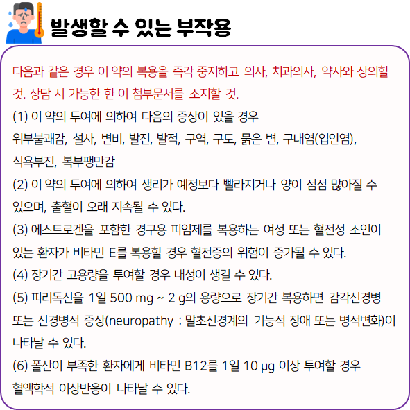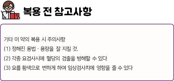 의약품은 반드시 복용 전에 복용 시 발생할 수 있는 부작용이나 주의사항 등을 미리 확인하신 후 드셔야 안전하게 먹을 수 있습니다.